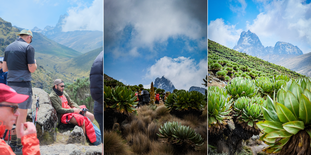 - Old Moses > Shipton’s Gate (4,236m) – trekking through the spectacular Mackinder U-shaped Valley, this is where the landscape began to reveal the unique, strange giant groundsel and lobelia plants, like something from a movie. This stunning setting framed the peaks of Mount Kenya and welcomed the resident rock hyrax. This is where things began to get harder as the altitude began taking its toll.